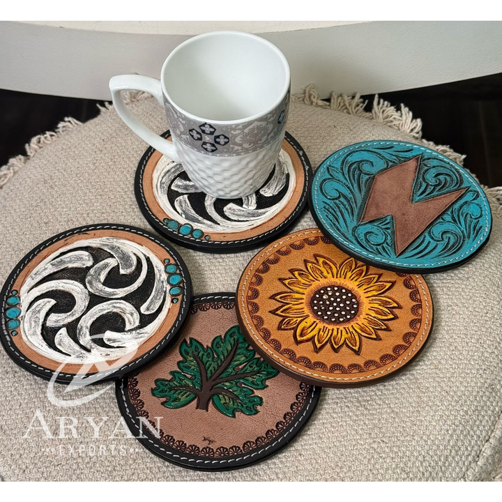 Hand Tooled Leather Coaster Set