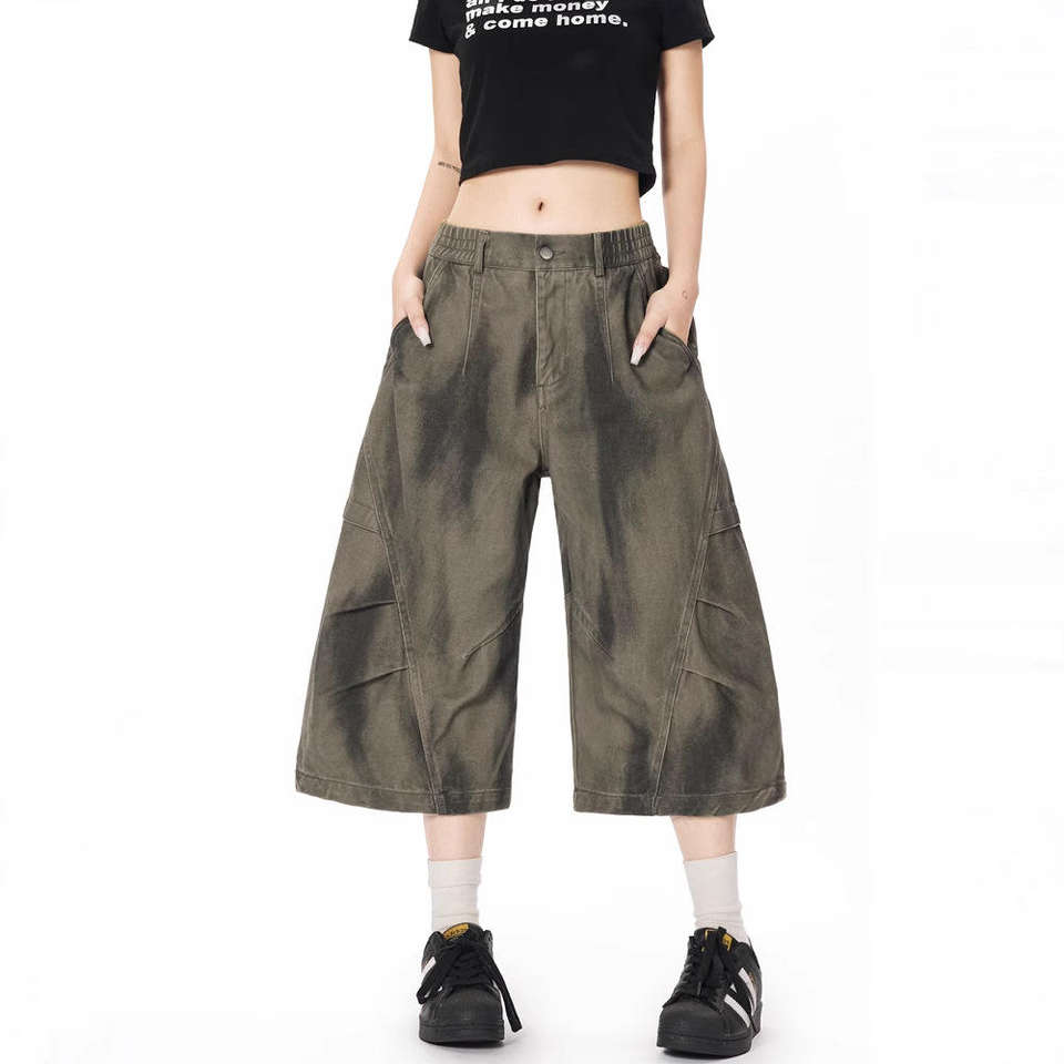 กางเกงขาสั้นผ้าเดนิมซักได้สำหรับผู้ชายกางเกงขาสั้นผ้าทอเอวปานกลางทรงหลวมใส่สบายสไตล์ลำลองบริการ OEM ตามสั่ง100%