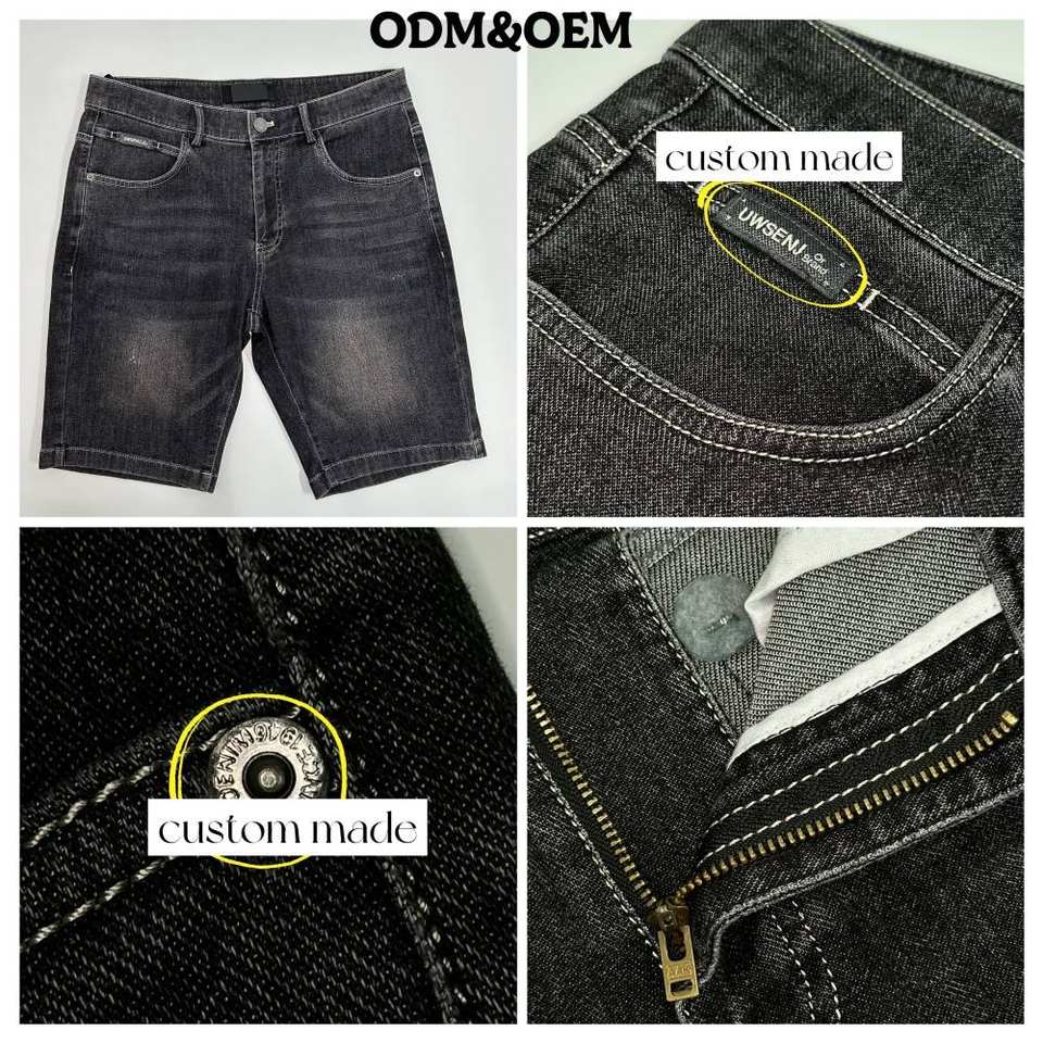 กางเกงขาสั้นผ้ายีนส์ทรงตรงเข้ารูปวินเทจสำหรับผู้ชายใหม่ออกแบบได้เองฤดูร้อน