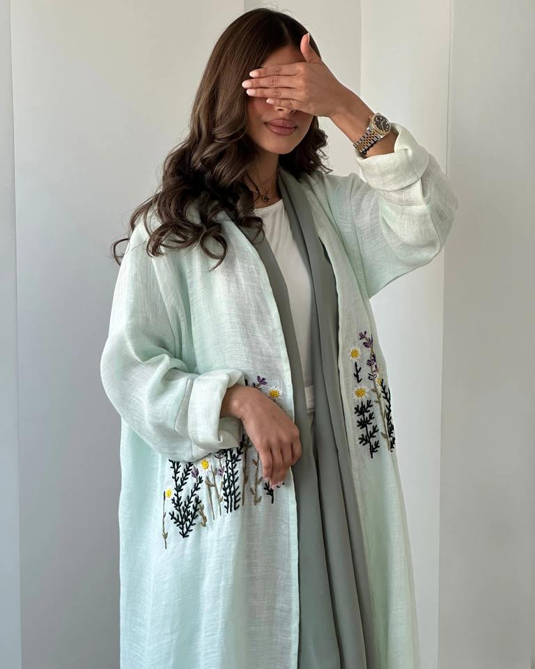 อาบายาสำหรับสตรีมุสลิมผ้าลินินปักอิสลามดีไซน์ใหม่ออกแบบได้ตามต้องการ