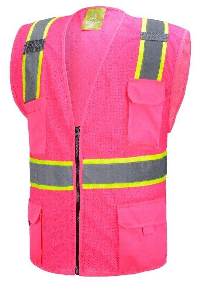 ใหม่ที่กำหนดเองสีชมพูสองโทนเสื้อกั๊กความปลอดภัยด้วยเครื่องมือหลายกระเป๋า