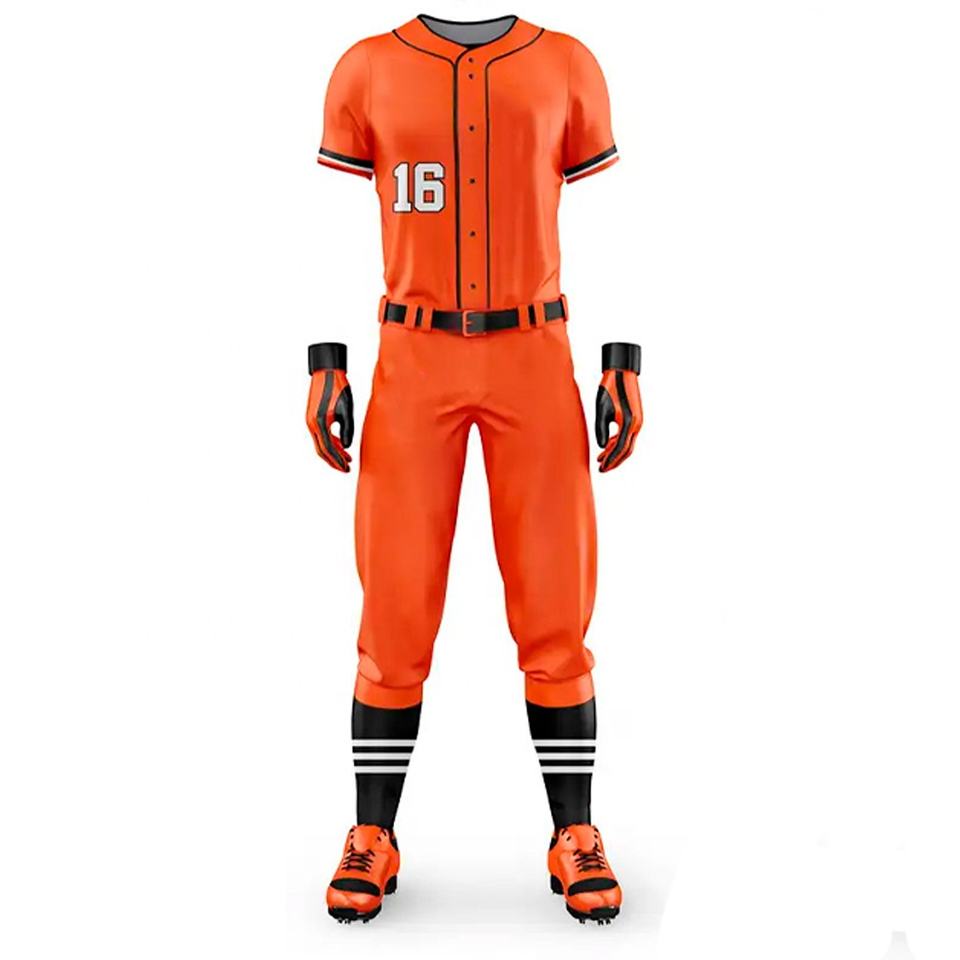 New Customized Wholesale Price Professional Custom Color Baseball Jersey Uniform Set Breathable Sportswear Orange Color