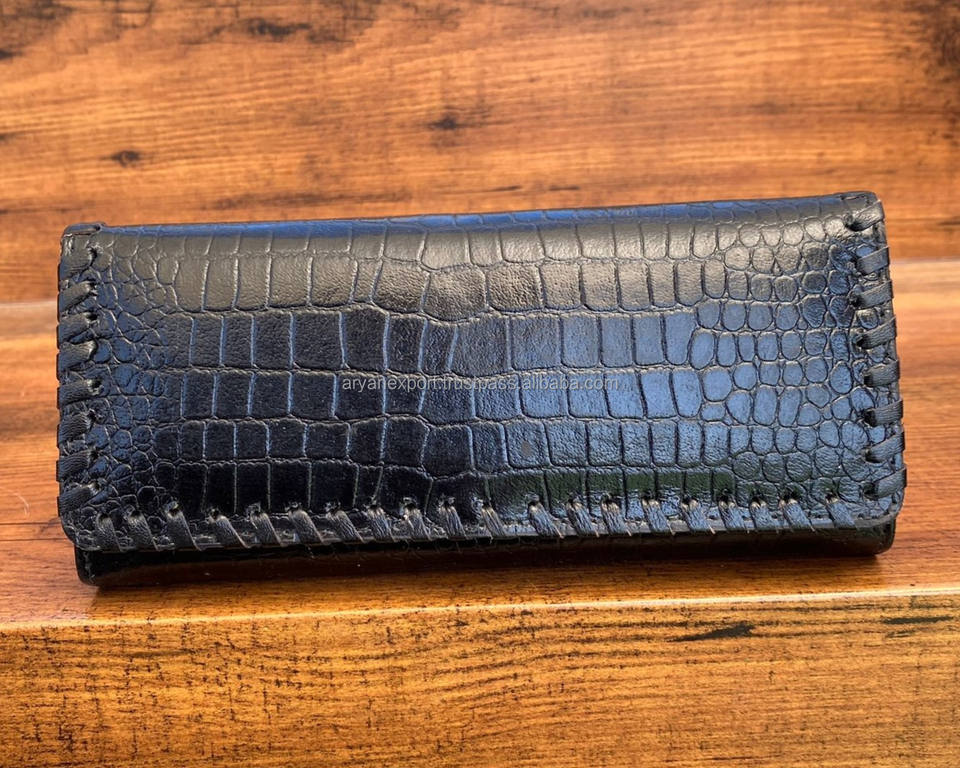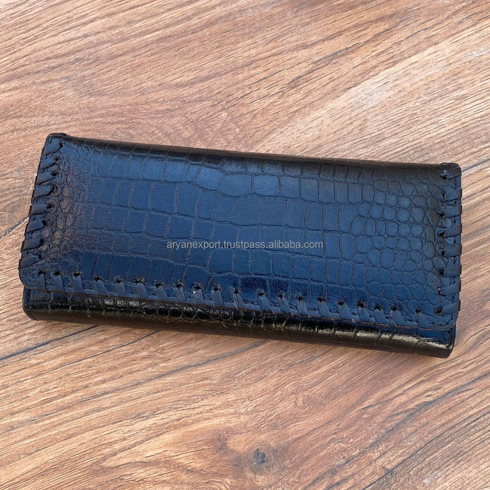 ที่ใส่บัตรหนังจระเข้สีดำป้องกันการโจรกรรมสำหรับผู้หญิงที่ใส่บัตรแบบบางออกแบบได้เองแบบใหม่