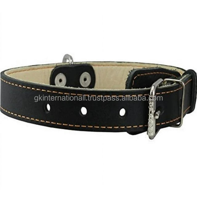 ปลอกคอสุนัขหนังพรีเมี่ยมสีดำสั่งทำใหม่มีการเย็บสีตัดกันและรองปลอกคอสัตว์เลี้ยงทำด้วยมือทำจากหนังทนทาน