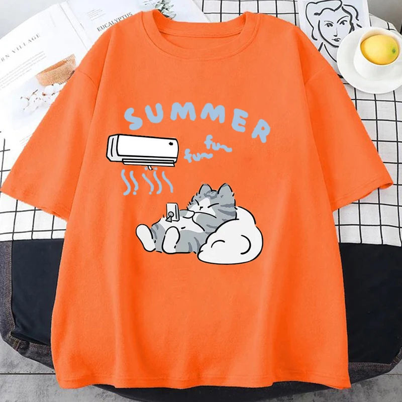 เสื้อยืดแขนสั้นลายแมวน่ารักใหม่ สำหรับผู้หญิงและผู้ชาย ใส่สบายๆ ทรงหลวม ไซส์ใหญ่ เนื้อผ้านุ่ม ใส่ได้ทั้งฤดูร้อน