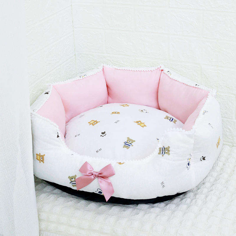 เตียงสัตว์เลี้ยงน่ารักแบบใหม่สำหรับสุนัขและแมว-วัสดุผ้า ใช้ได้ทั้งฤดูร้อน/ฤดูหนาว ดีไซน์สบายและกันลื่น