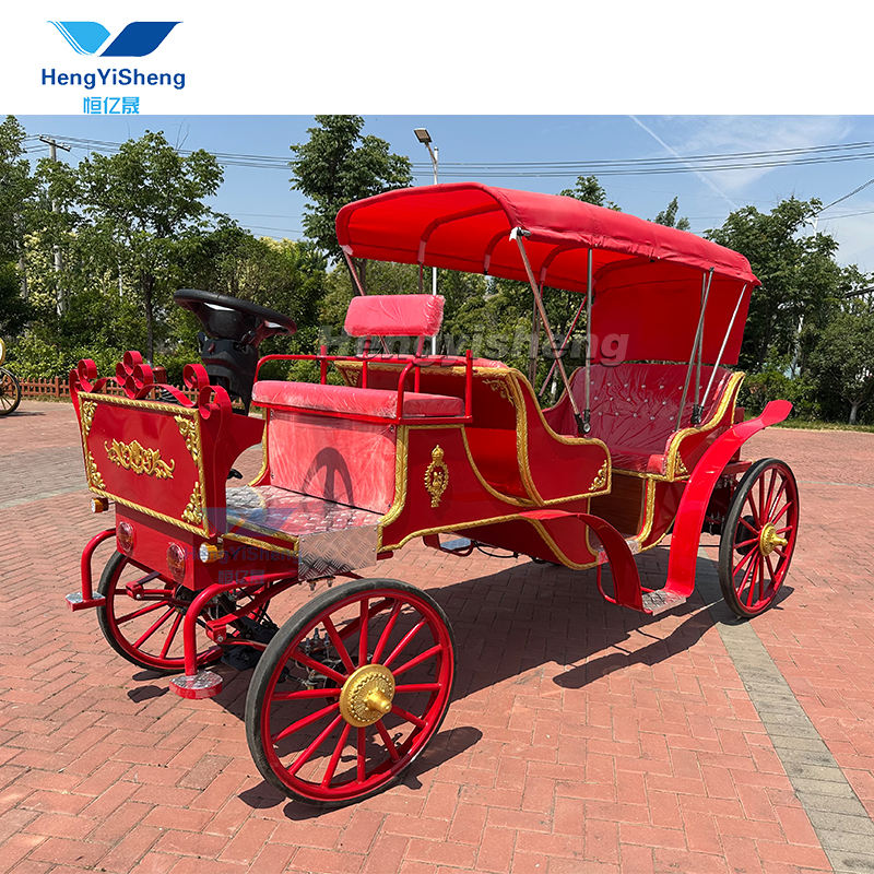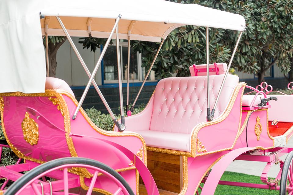 รถม้าไฟฟ้าสำหรับงานแต่งงานสีชมพูน่ารักหรูหราโรแมนติกขนส่งพิเศษสำหรับเที่ยวชม
