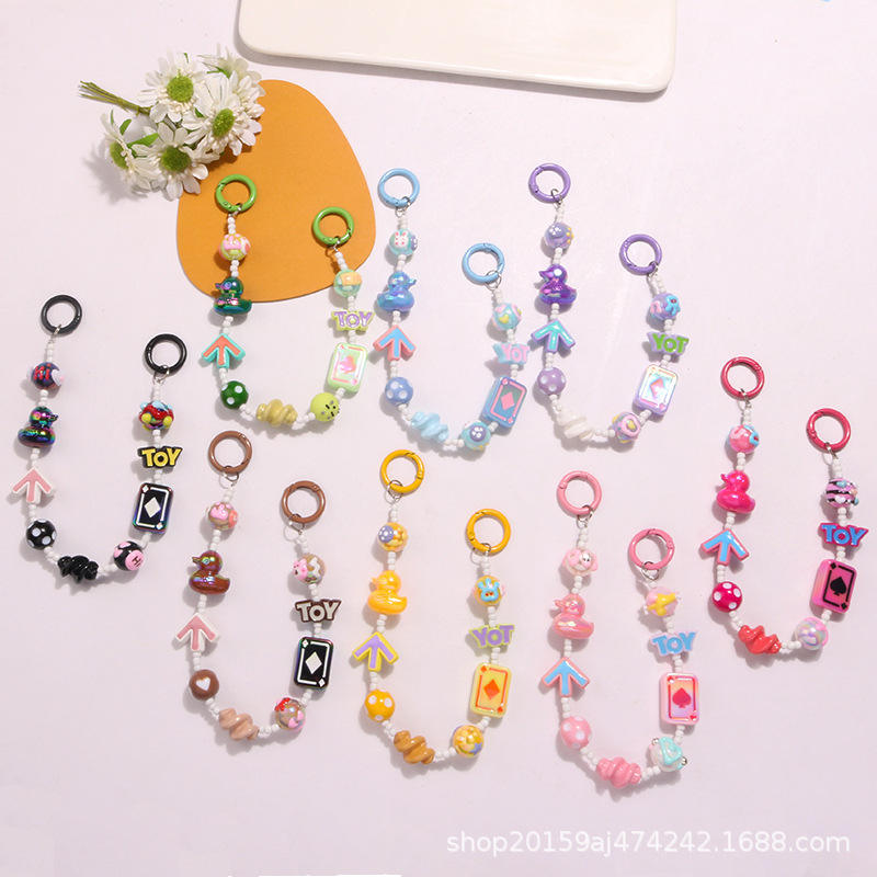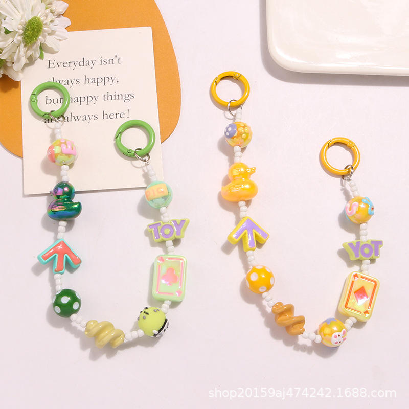 พวงกุญแจระบายสีรูปเป็ดพร้อมจี้ลูกปัดสีทึบน่ารักใหม่อุปกรณ์ตกแต่งกระเป๋า
