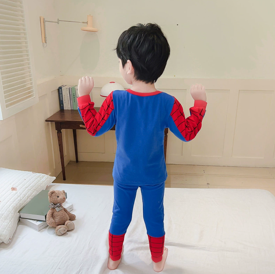 ชุดนอนการ์ตูนซูเปอร์ฮีโร่สุดน่ารักสำหรับเด็กผู้ชาย ชุดนอนสองชิ้น ชุดนอนใส่สบายสำหรับอยู่บ้าน