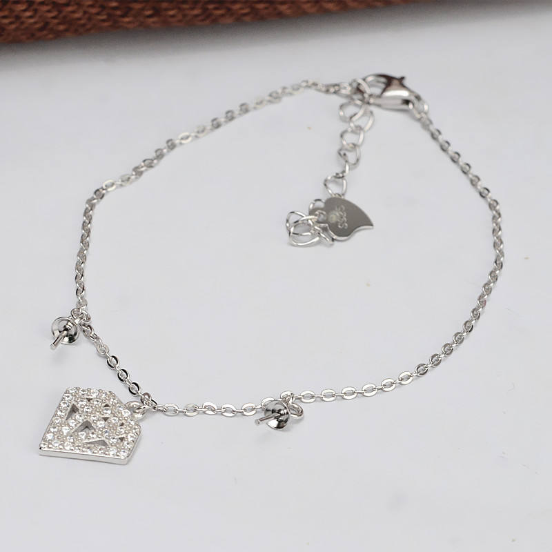 ชุดสร้อยคอและกำไลข้อมือเงินแท้ S925 รูปทรงเพชร ดีไซน์เรียบง่ายทันสมัยสำหรับผู้หญิง-ผลิตภัณฑ์สร้อยคอเพชร