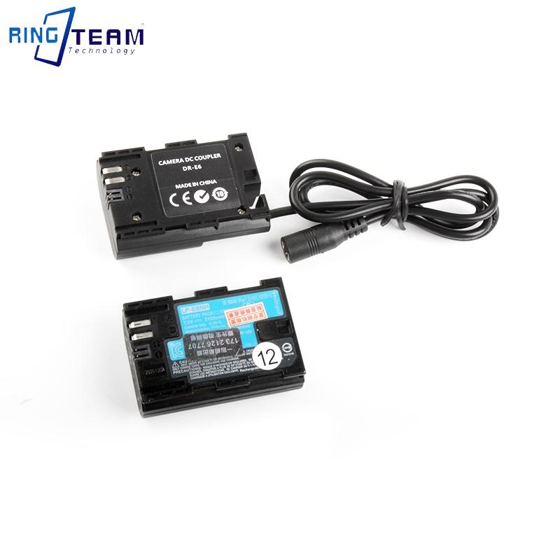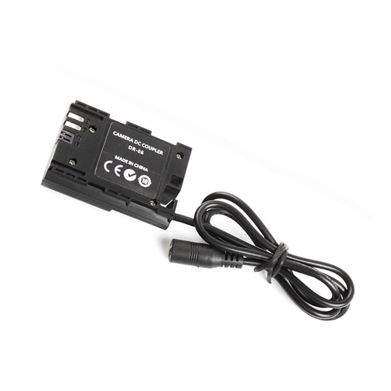 แบตเตอรี่จำลอง DR-E6 รุ่นใหม่ พร้อมสกรู LP-E6 ACK-E6 ตัวแปลงไฟ DC สำหรับกล้อง Canon EOS 5D 5D2 6D 7D 60D และ Blackmagic BMPCC 4k 6k สีดำ