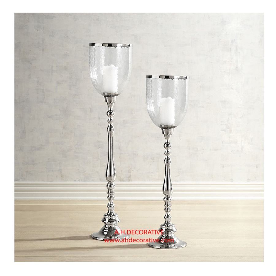 ฐานวางเทียนตกแต่งพร้อมเชิงเทียนทำด้วยมือทำจากแก้วทำจากเงินสุดทึ่ง