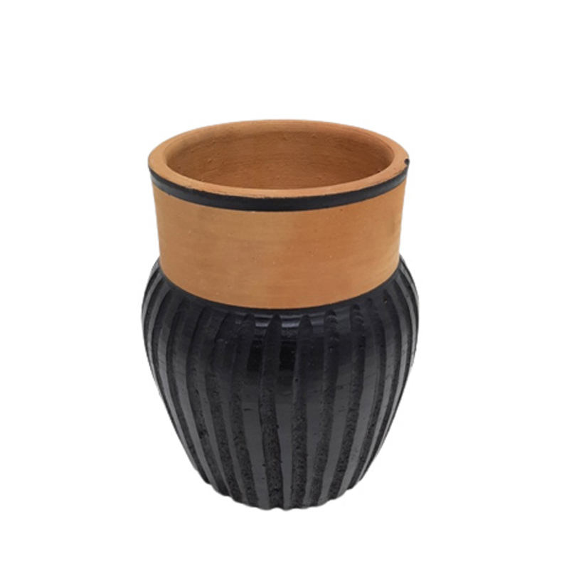 แจกันดอกไม้ทรงกลมสำหรับตกแต่งใหม่สีดำและธรรมชาติดินเหนียวการออกแบบที่หรูหราสำหรับตกแต่งสวนและห้องนั่งเล่น