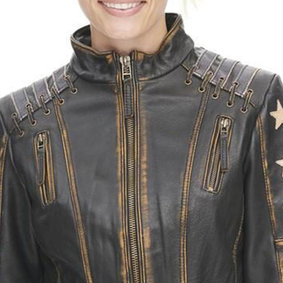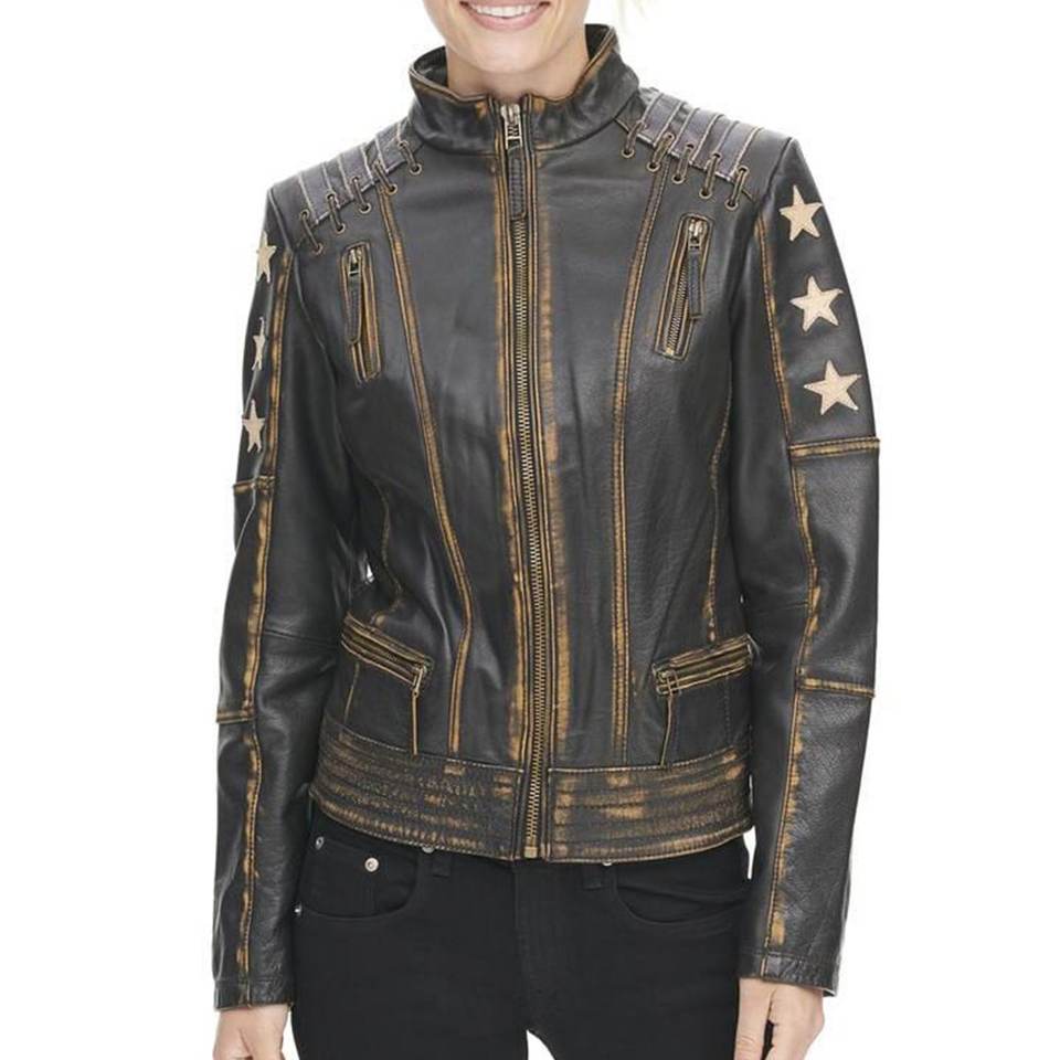 แจ็คเก็ตหนังแท้สไตล์วินเทจสีดำล้างสีสำหรับผู้หญิง พร้อมโลโก้แบบกำหนดเองที่ทันสมัย เหมาะสำหรับฤดูหนาว เสื้อโค้ทหนังแท้แนวสตรีทแฟชั่น