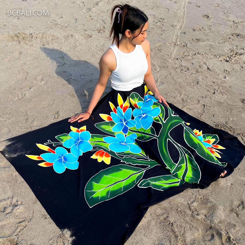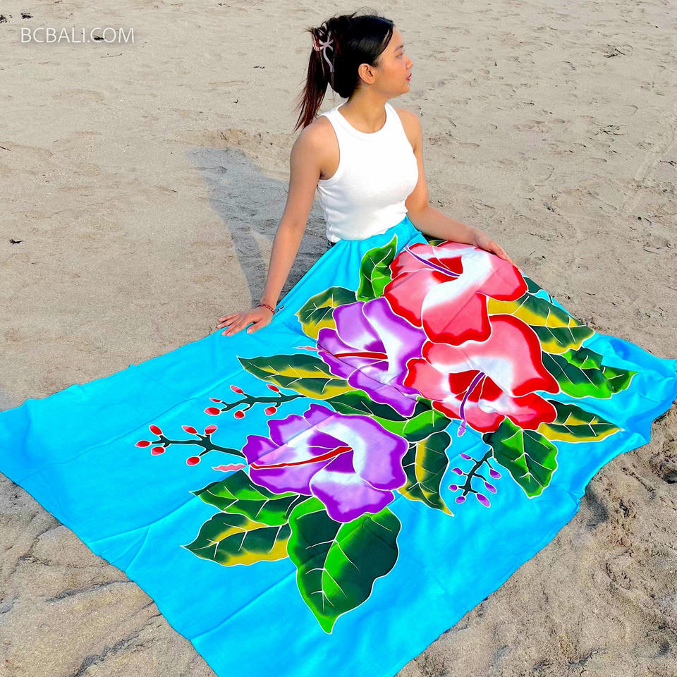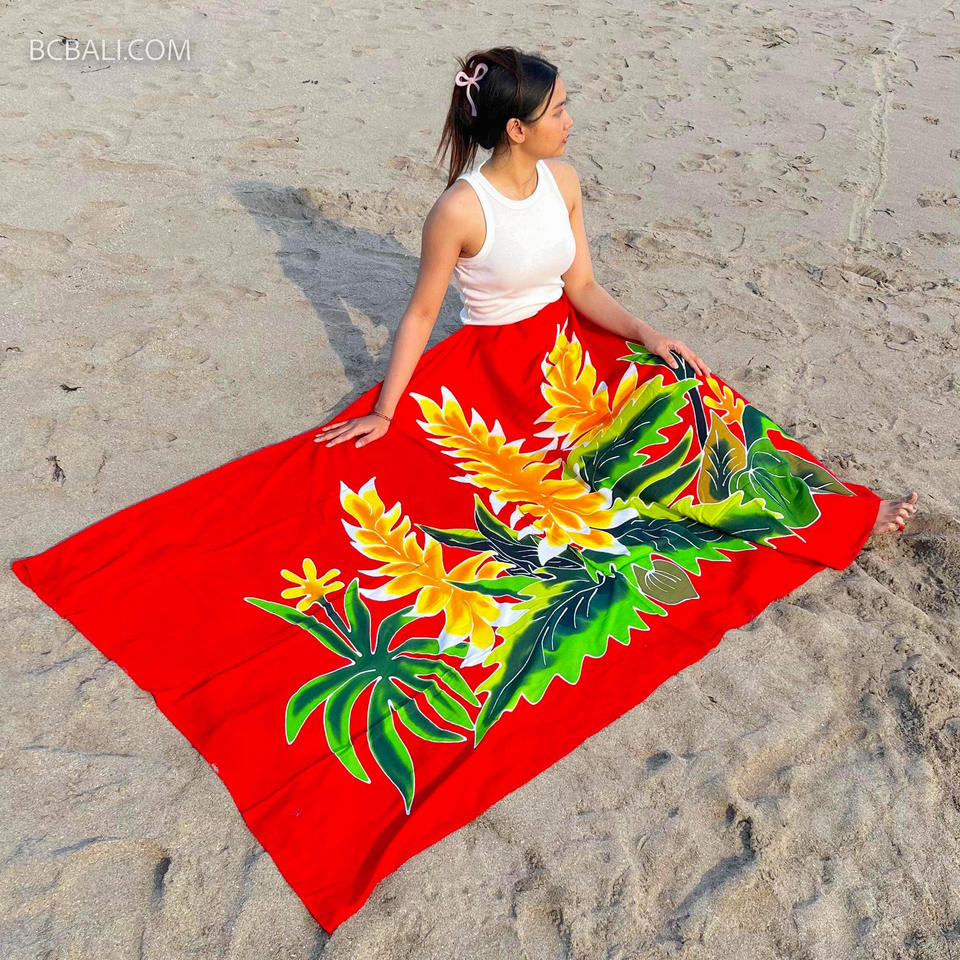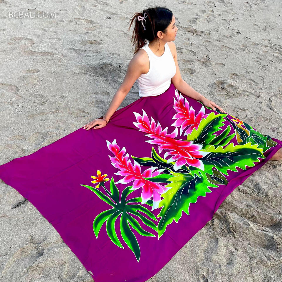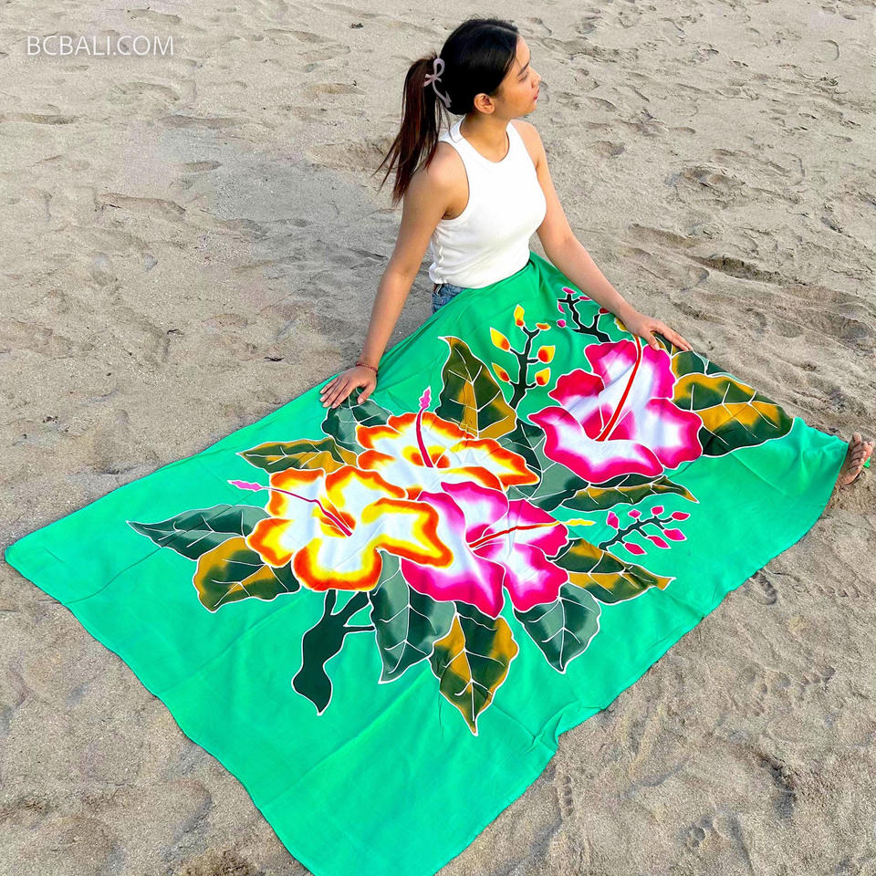 ผ้าโสร่งผ้าเรยอนสำหรับผู้หญิงลายวาดมือดีไซน์ใหม่ชุดชายหาดลายดอกไม้บาหลีสำหรับฤดูร้อน