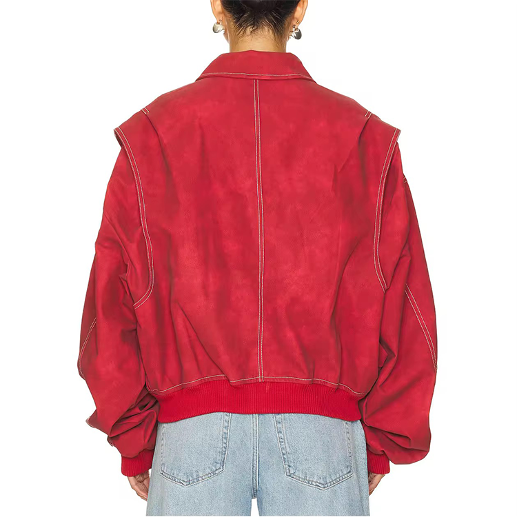 New Desgin Fashion Women Red Suede Bomber Jacket Unisex Oversized Lapel Zipper Suede Jacket