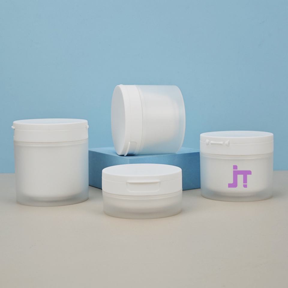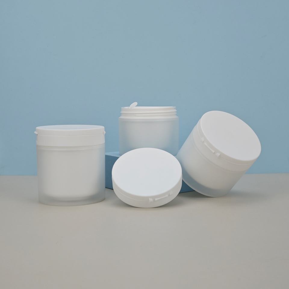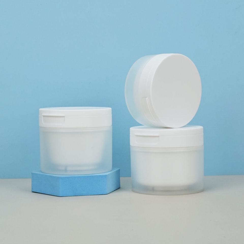 ดีไซน์ใหม่ ขนาด 100 มล. 120 มล. 150 มล. กระปุกครีม PP ทรงกลม ผิวสัมผัสนุ่ม แบบสองชั้น สำหรับครีมบำรุงรอบดวงตาและสครับขัดผิว