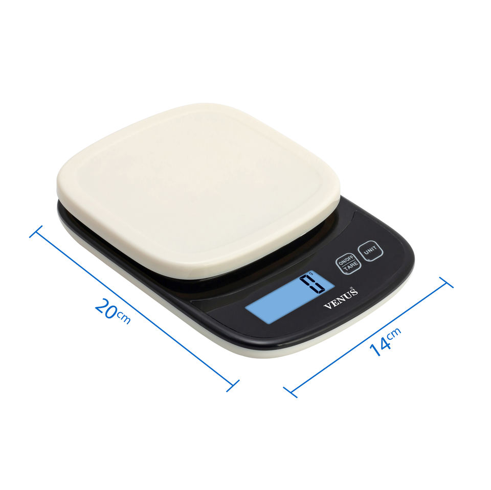 เครื่องชั่งครัวแบบดิจิตอล ดีไซน์ใหม่ รับน้ำหนักได้ 10 กก. หน้าจอ LCD วัสดุพลาสติกพิเศษ ใช้แบตเตอรี่ AAA ความละเอียด D=1 กรัม