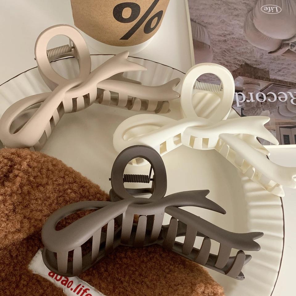 คลิปหนีบผมอะคริลิคทรงโบว์สีทึบขนาด12ซม. ดีไซน์เรียบง่าย