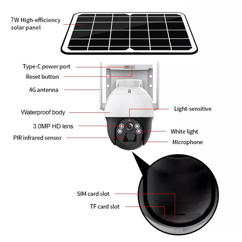 New Design 2 Inch Mini Body 3MP HD Solar PTZ Camera With 7W Solar Panel WIFI 4G Optional Full Color IR Night Vision
