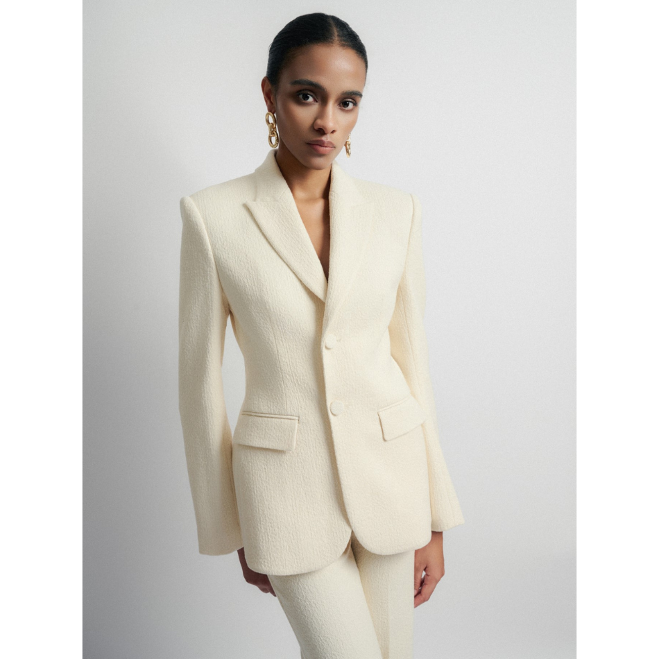 2025เบลเซอร์สำหรับผู้หญิงสองปุ่มผ้าขนแกะ Maci สีขาวผ้าคุณภาพสูงผลิตจากเวียดนาม