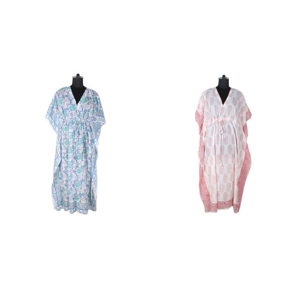 ชุดเดรส2025ดีไซน์ใหม่สำหรับเด็กผู้หญิง/ผู้หญิงผ้าฝ้ายแท้คาฟตันยาวจาก Jaipur อินเดียขายส่งบล็อกพิมพ์ลาย