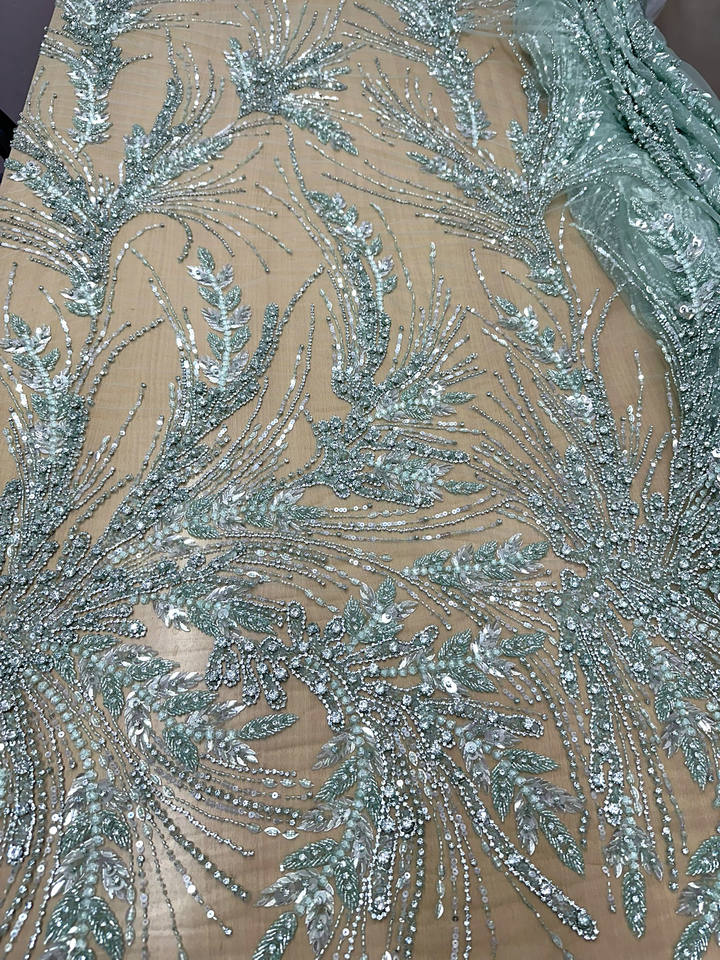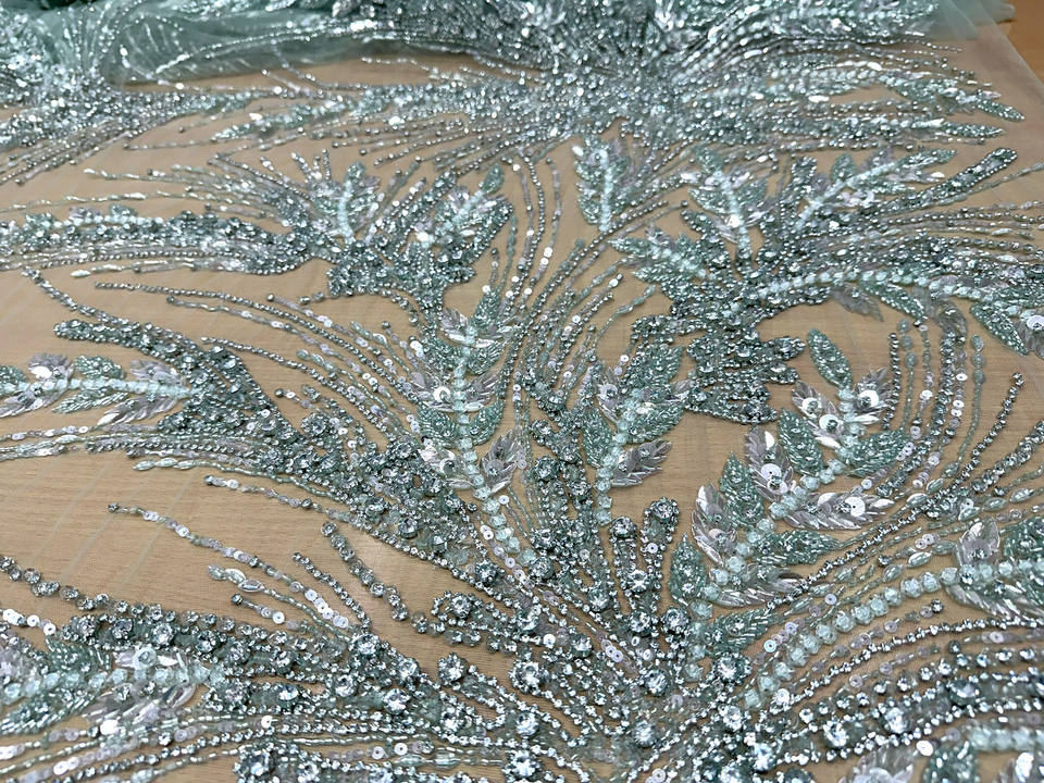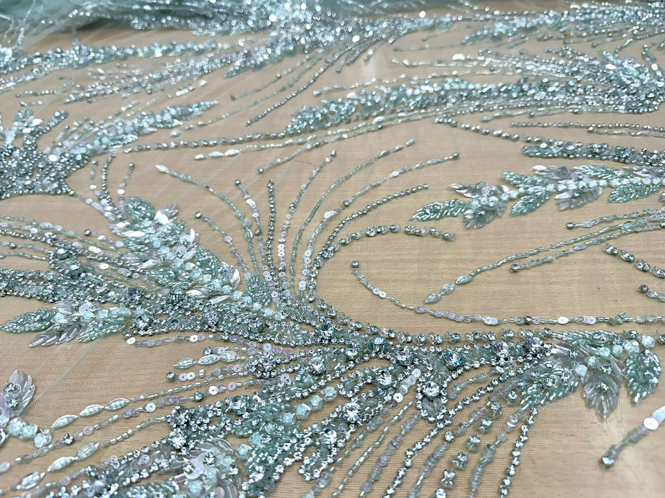 ลูกปัดหินคริสตัลสีเขียวมิ้นท์2025ดีไซน์ใหม่ชุดแต่งงานเจ้าสาวผ้าลูกไม้ปักสำหรับงานแต่งงาน