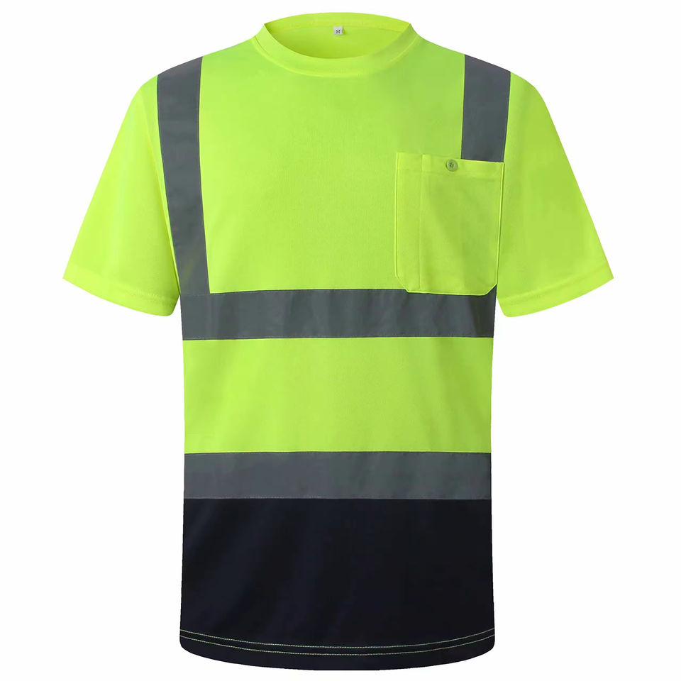 เสื้อยืดนิรภัยผู้ชายผ้าไหมระบายอากาศดีไซน์ใหม่ปี 2026 ไซส์ใหญ่ เสื้อทำงานแบบมองเห็นได้ชัดเจน ทนทานสูง แห้งเร็ว พิมพ์ลาย UV แบบเข็ม