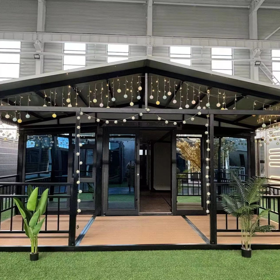 บ้านภาชนะสำเร็จรูปแบบขยายได้พร้อมระเบียงห้องน้ำและห้องครัว40ft 20FT ดีไซน์ใหม่หรูหรา