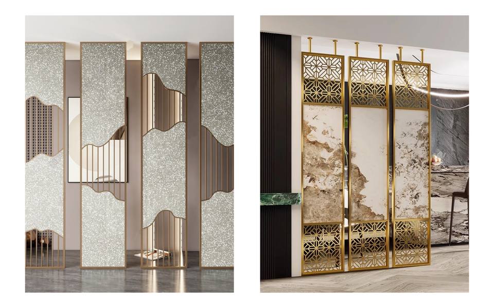 ฉากกั้นห้องโลหะสแตนเลสลาย304สำหรับห้องนั่งเล่นฉากกั้นดีไซน์แบบกำหนดเองดีไซน์ใหม่