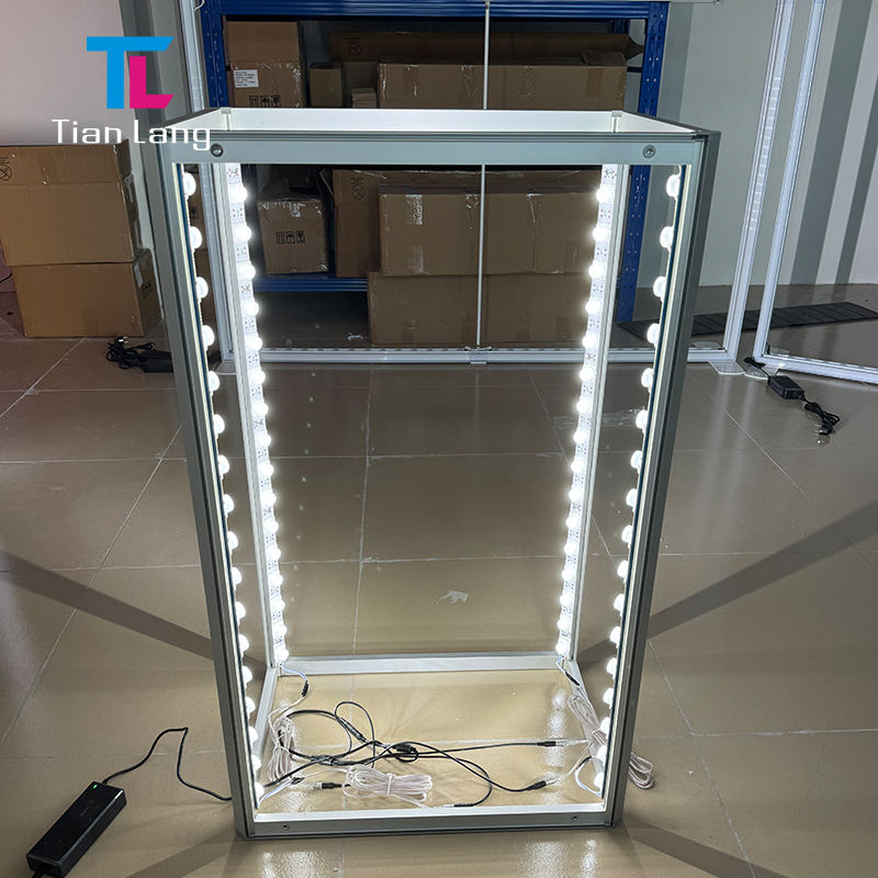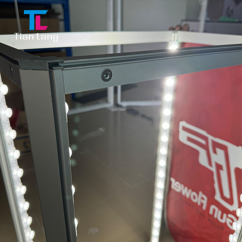 โต๊ะอลูมิเนียมไร้กรอบสำหรับโฆษณาอุปกรณ์งานแสดงสินค้าแบบแยกส่วนพร้อมไฟ LED แบบพกพา4ft ติดตั้งได้อย่างรวดเร็วดีไซน์ใหม่
