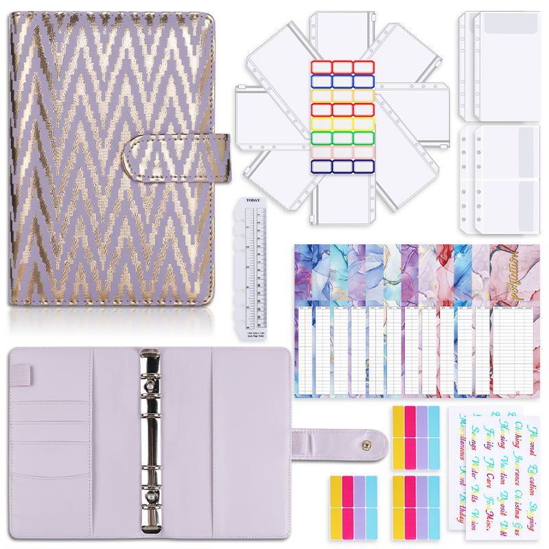 ชุดเครื่องผูกเงินงบประมาณ6ห่วงหนัง PU A6สมุดโน้ตทรงหลวมพร้อมซองเงินสดดีไซน์ใหม่