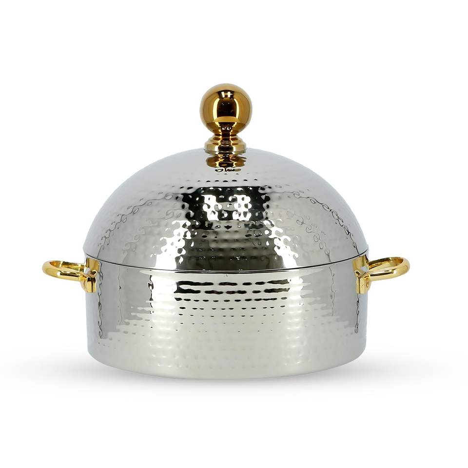 เซิร์ฟเวอร์อาหารสแตนเลสพร้อมที่จับลายดอกไม้ทองเหลืองหม้อร้อนความจุ7L ดีไซน์ใหม่