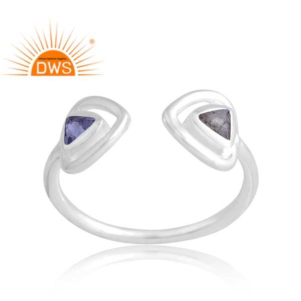 แหวนพลอย iolite & labradorite ธรรมชาติ925เงินสเตอร์ลิงเครื่องประดับออกแบบได้ตามต้องการของขวัญสำหรับผู้หญิง