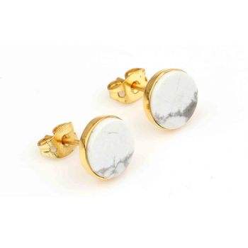 Product Name:White Howlite Turquoise 925 Sterling Silver Gold Plated Stud Earring