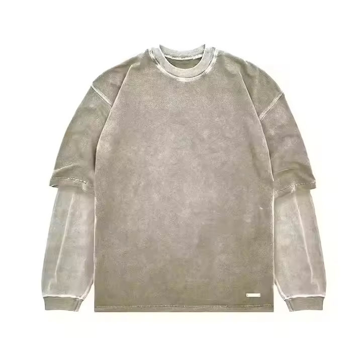 เสื้อยืดแขนสั้นทรงปกติสไตล์ไฮสตรีทสำหรับผู้ชาย ดีไซน์ใหม่ ล้างสีแบบแอซิด ผลิตจากผ้าฝ้าย 100% พร้อมการตัดเย็บแบบสองชั้น
