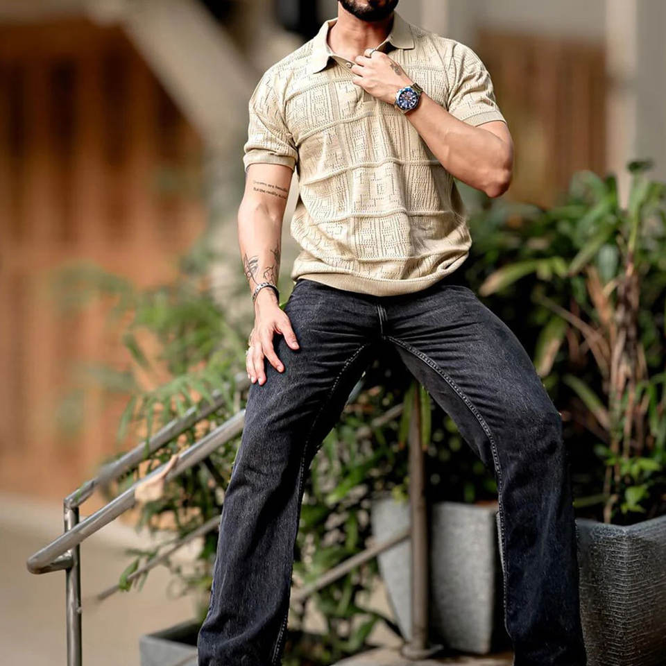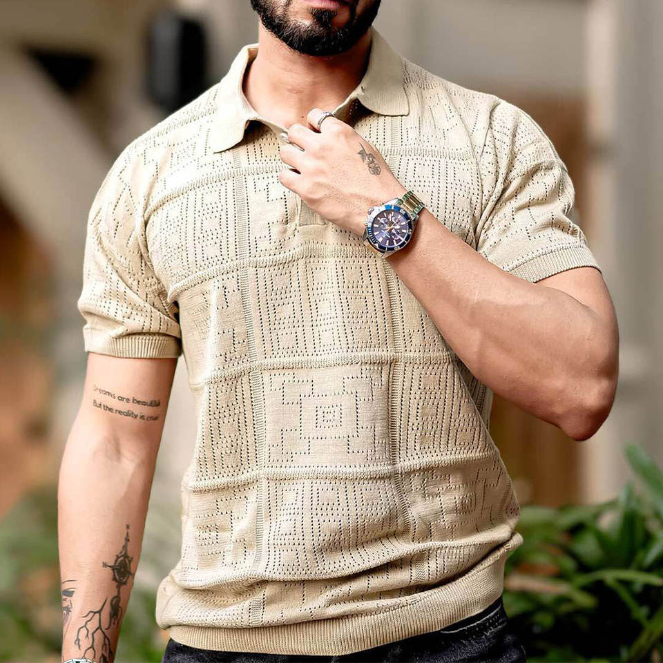 เสื้อกอล์ฟผู้ชายดีไซน์ใหม่ ป้องกันรอยยับ แฟชั่นทันสมัย แขนสั้น ปักโลโก้ได้ตามต้องการ สินค้ามาใหม่
