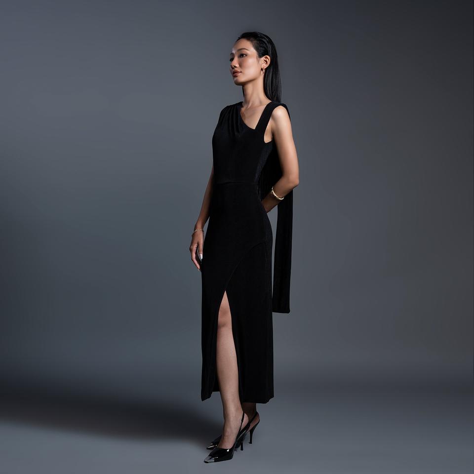 ชุดเดรสบอดี้คอนเปิดไหล่ลักษณะ