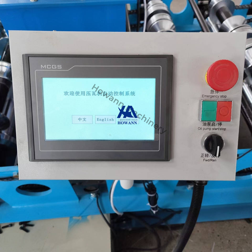 เครื่องทำกระเบื้องหลังคาชั้นเดียวอัตโนมัติเครื่องขึ้นรูปม้วนหลังคาลูกฟูกดีไซน์ใหม่
