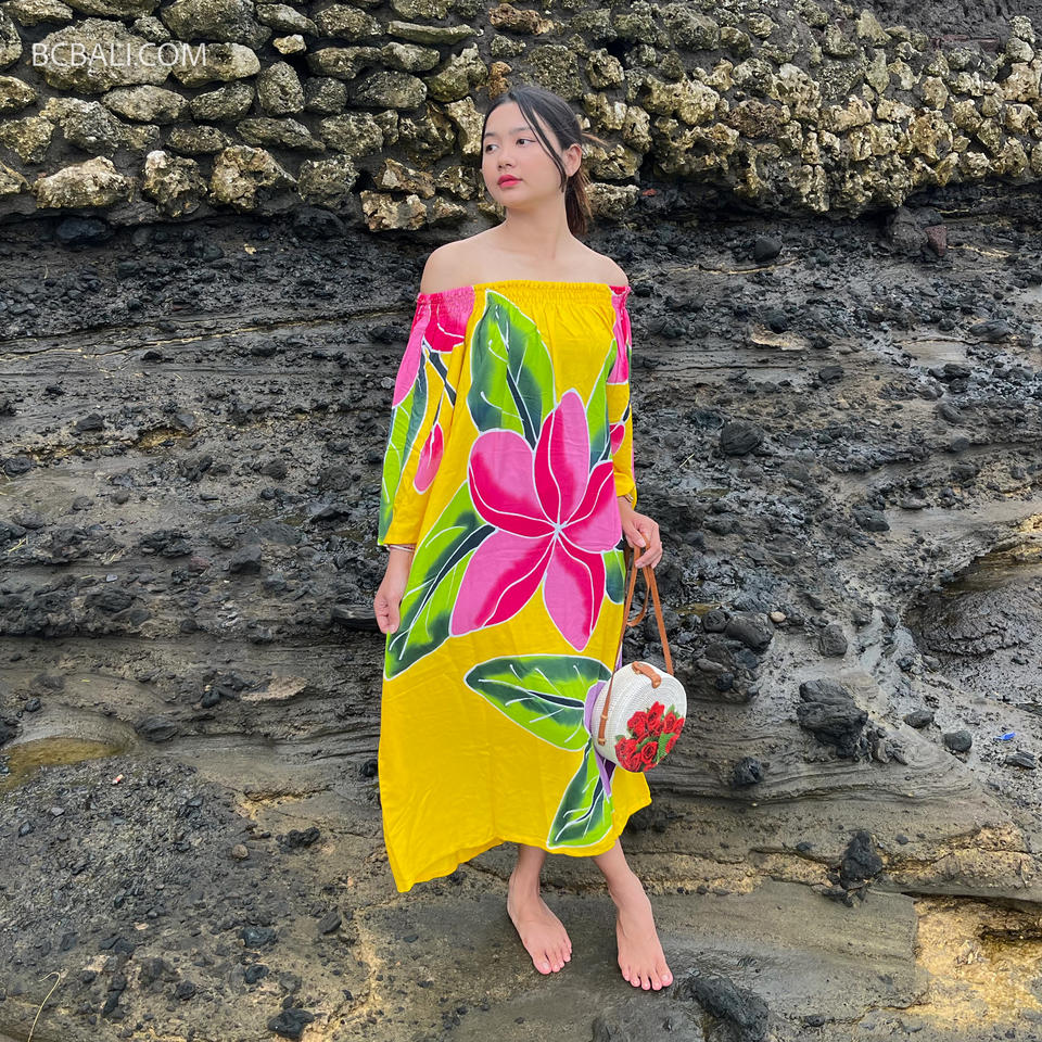 ชุดเดรสชายหาดผ้าเรยอนสำหรับฤดูร้อนทำมือวาดต้นฉบับในบาหลีดีไซน์ใหม่