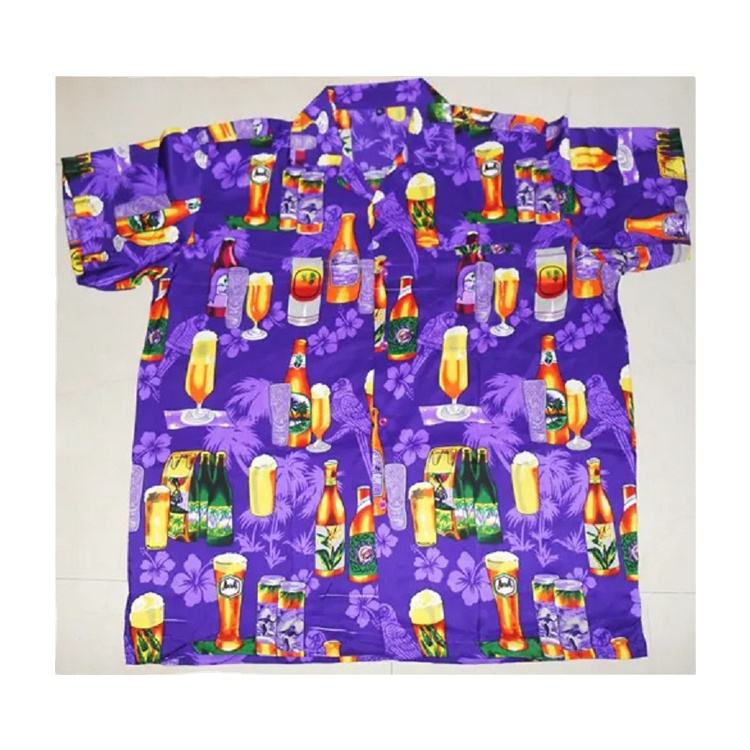 เสื้อฮาวายทรงหลวมพิมพ์ลายขวดเบียร์แขนสั้น,ชุดชายหาดปาร์ตี้ฤดูร้อนออกแบบเองได้