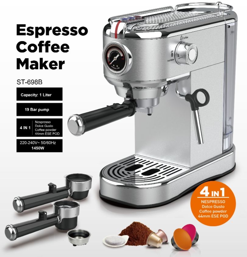 Function:4 in 1,Nespresso/Dolce gusto/Coffee powder/44mm ESE pod