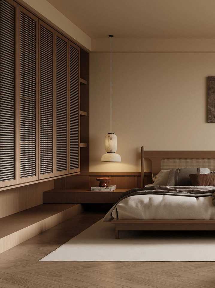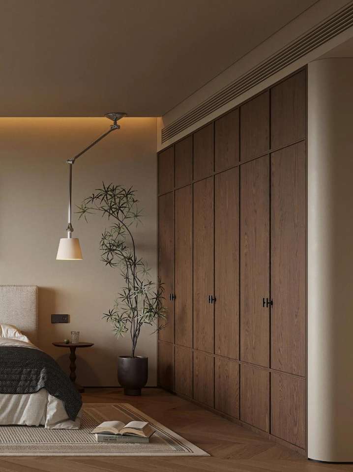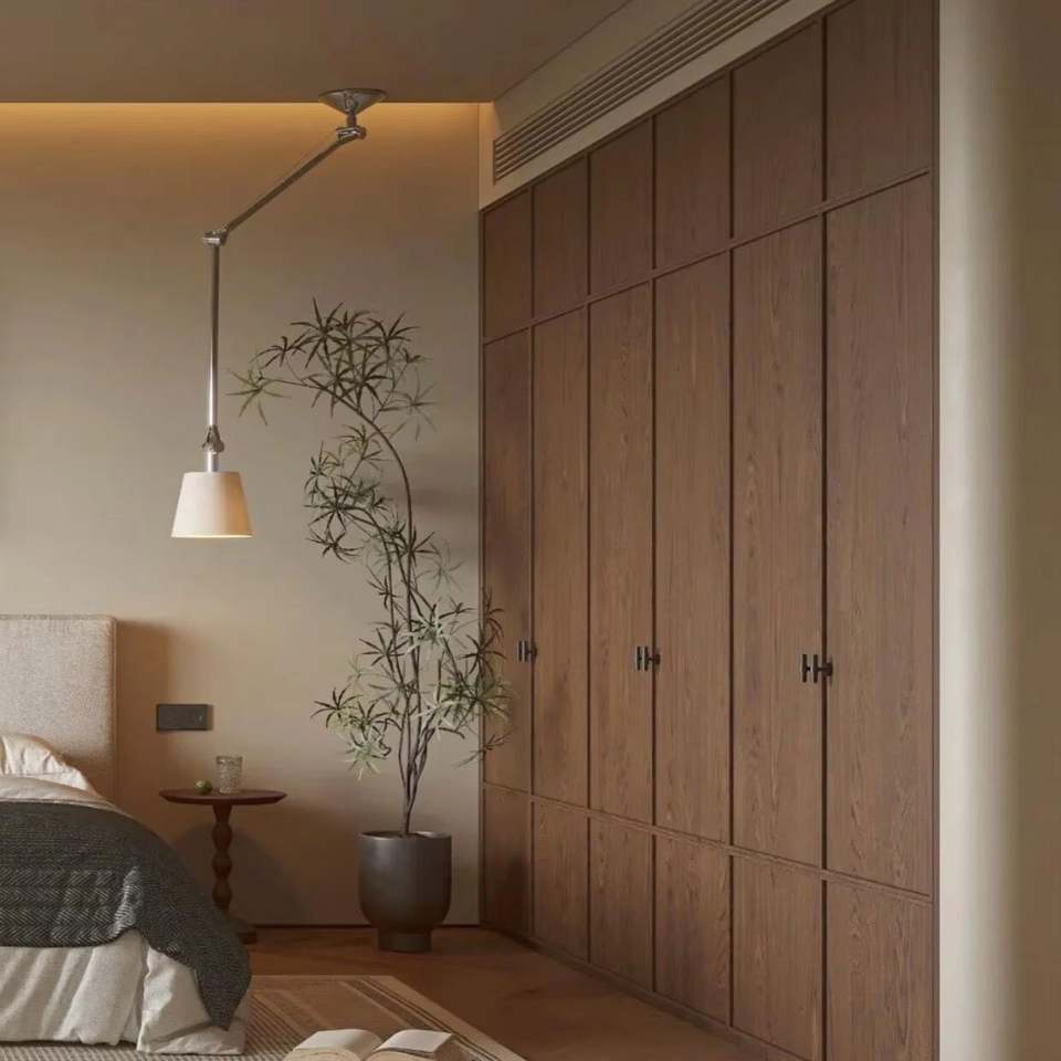ประตูบานเลื่อนสำหรับห้องนอนตู้เสื้อผ้าสีไม้สไตล์มินิมอลแบบทันสมัยตู้เสื้อผ้าห้องนอนกำหนดขนาดได้เอง