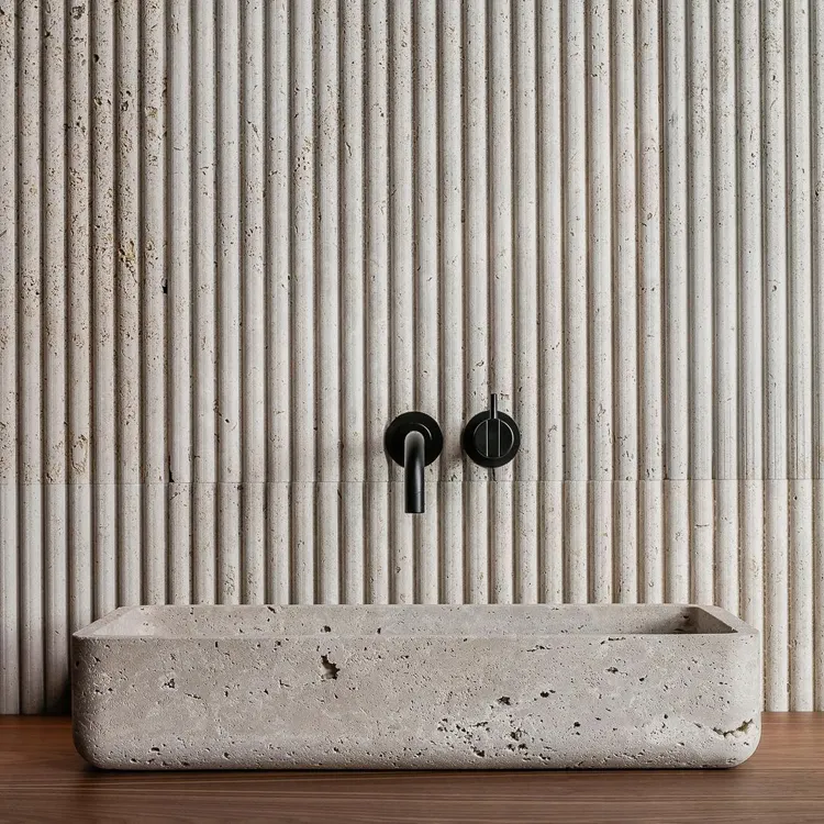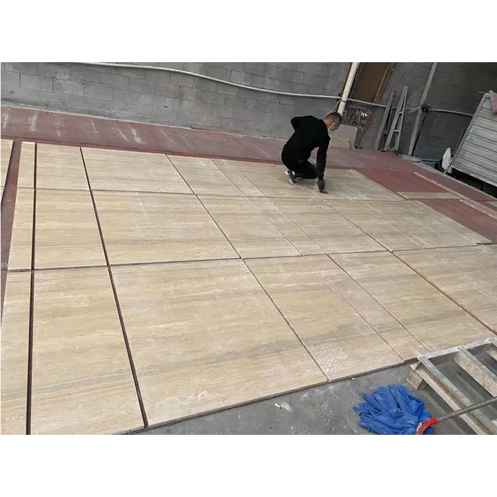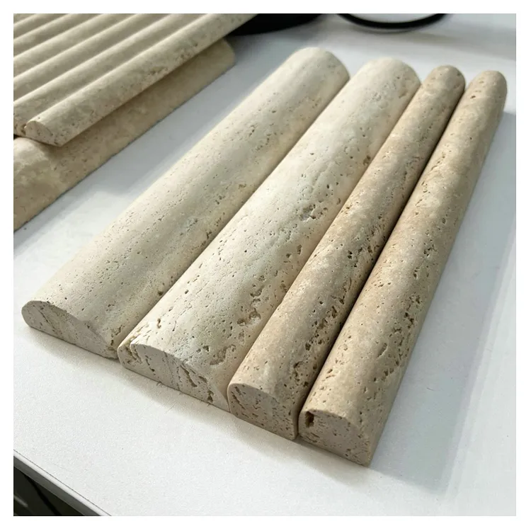 กระเบื้องหินอ่อนลายโค้งแบบใหม่ สีเบจ ลายร่อง สำหรับทำตู้ข้างเตียง กระเบื้องหินอ่อนลายร่อง กระเบื้องหินอ่อนลายร่อง Travertine