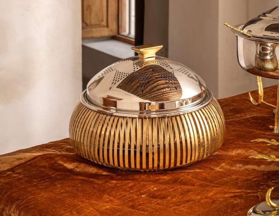 New Design Best Selling Luxury Handmade Classic Decorative Food Warmer Buffet Hotpot Casseroles Polished Arabic Hot Pot Warmer