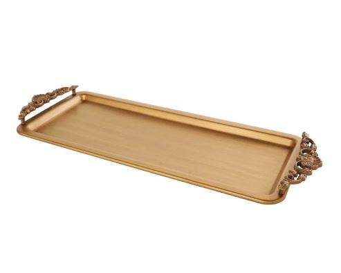 Best Selling Modern Rectangular Gold Design Handmade Aluminum Serving Tray for Wedding Diwali Nuts Fruits Snack Dessert Serving