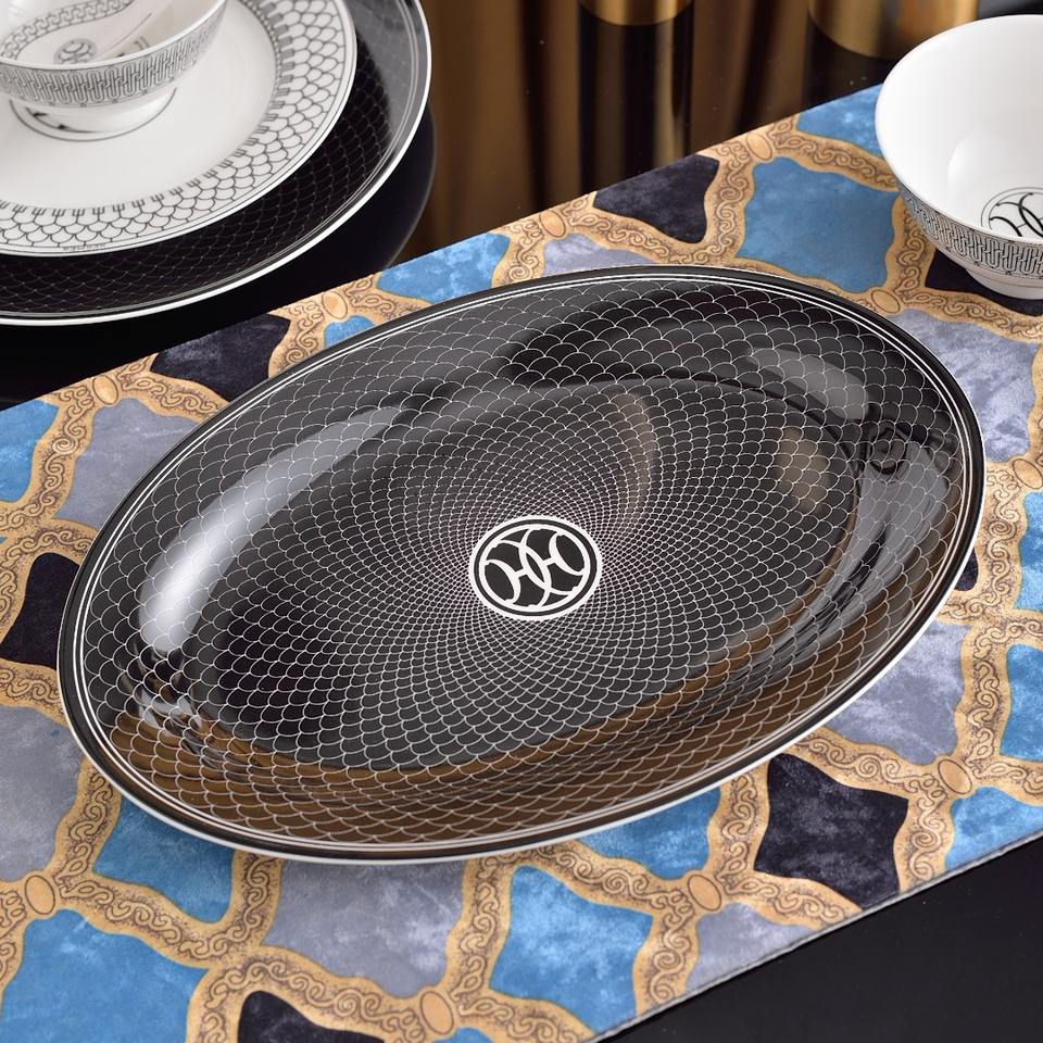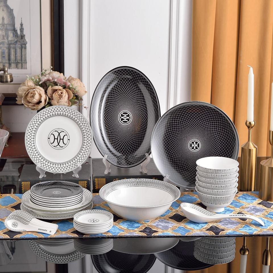 ชุดอาหารเย็นเซรามิกสีดำชุดถ้วยชาม32-pcs ถ้วยชามพอร์ซเลนชุดจานโมเดิร์นดีไซน์ใหม่