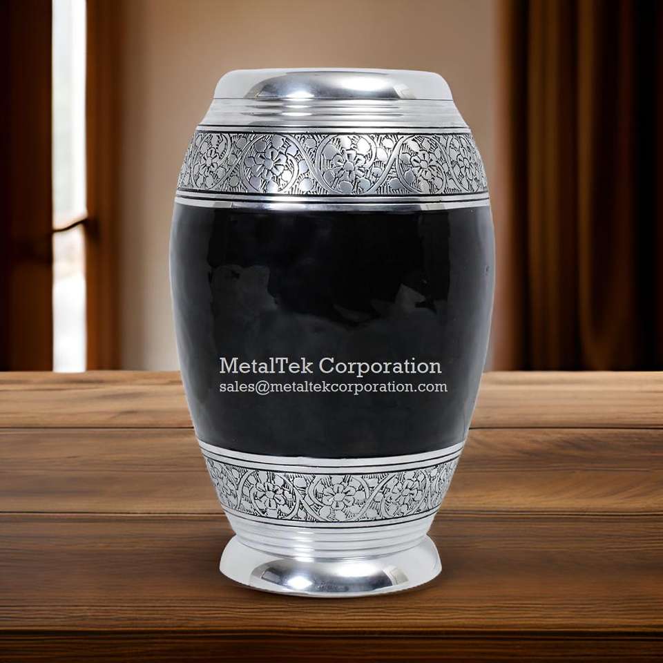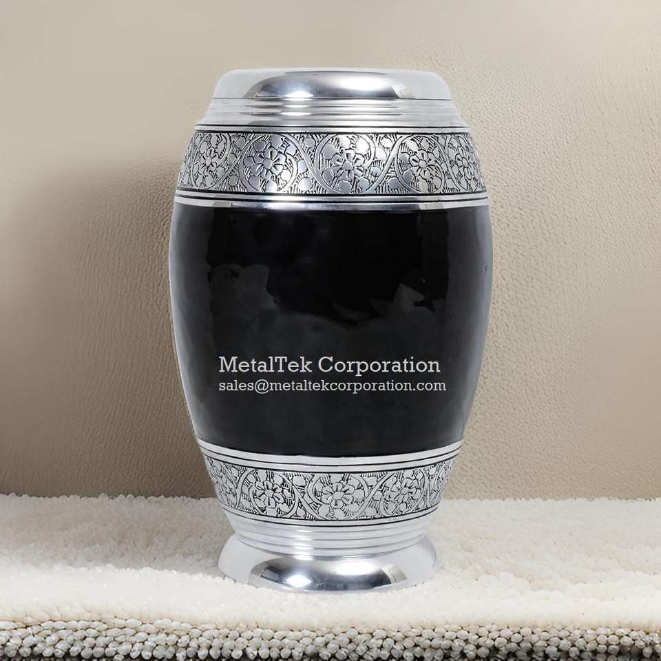 โกศสำหรับงานศพผู้ใหญ่ทำจากอลูมิเนียมโลหะพร้อมฝาสำหรับใส่เถ้ากระดูกสีดำดีไซน์ใหม่
