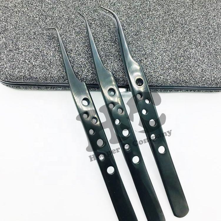 ชุดแหนบต่อขนตาสแตนเลสสีดำชุดเครื่องมือความงามที่ยั่งยืนสำหรับขนตาเพิ่มวอลลุ่มแหนบมิงค์ดีไซน์ใหม่