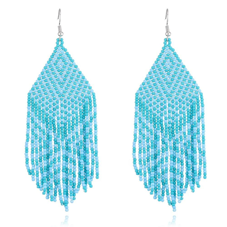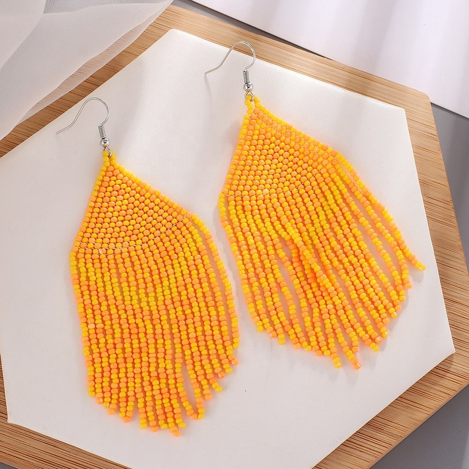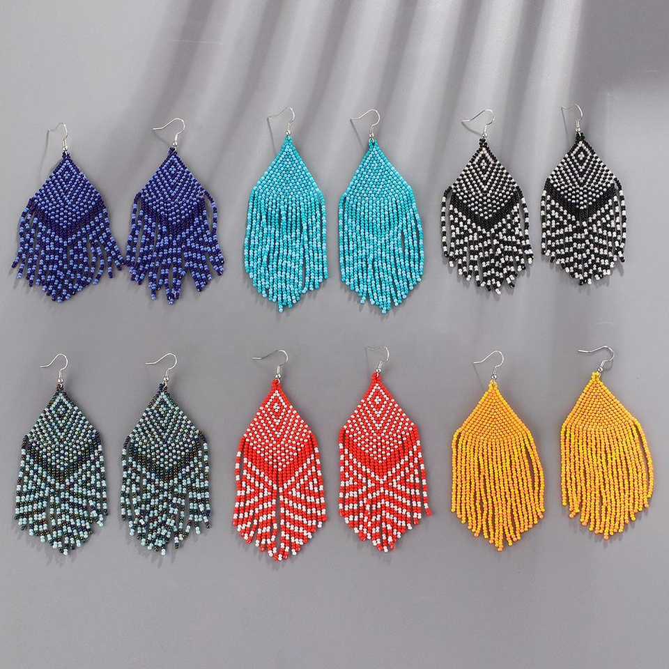 ต่างหูพู่ประดับลูกปัดหลากสีสไตล์โบฮีเมียนลายชนเผ่า ดีไซน์ใหม่สำหรับฤดูร้อนและชายหาด ต่างหูห้อย Miyuki โดย MD HANDICRAFTS